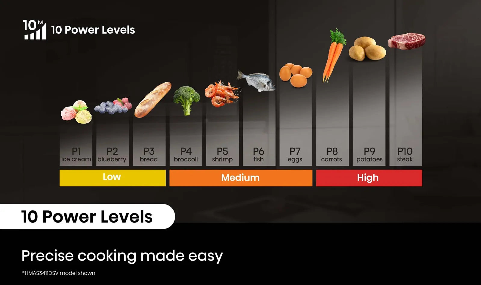 Elevate your kitchen with the Hisense 34L 1100W Inverter Microwave. With a sleek black mirror design, this microwave offers a generous 34-litre capacity and 10 levels of cooking power, and itβs Inverter Technology guarantees fast and even heating for meals of any size. Its family-sized design is ideal for cooking lots of food, and features an intuitive LED display and express start options for added convenience.