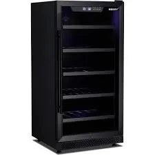 FREE STANDING MATT BLACK MK11 WINE COOLER. MATT BLACK DOOR FRAME, MATT BLACK DIAMOND CUT KICK PLATE, 5 PULL OUT SHELVES WITH MATT FRONT COVERS, BLACK LOCK, BLUE LED LIGHT, SINGLE ZONE, R600A (RUNOUT)