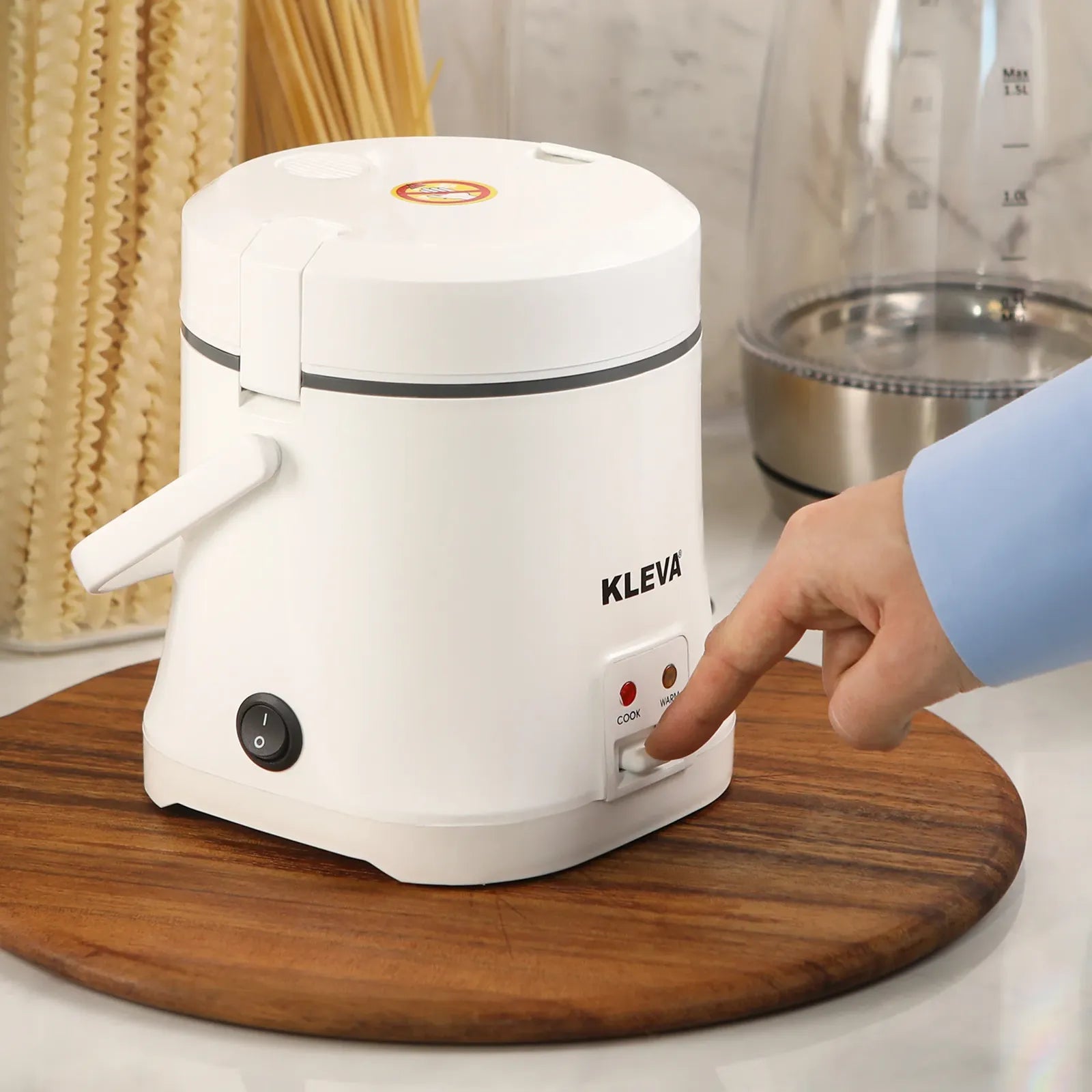 The Kleva One-Button Cooker makes perfectly cooked meals effortless. Just add your ingredients—vegetables, meat, pasta, and more—and press the one button. The cooker will handle the rest, cooking the food and the meat to perfection and then keeping it warm until you're ready to eat.