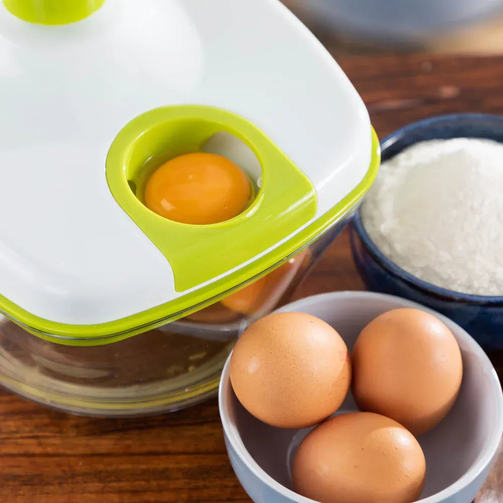 Chop, Whip and Prep faster with this ultimate Kleva Rotochop! Complete with 3 interchangeable attachments - a Chopping Blade, Whipping Blade and Salad Spinner, the Kleva Rotochop is the ultimate tool for creating delicious dishes, fast food prep, salads and desserts in seconds. Designed with a huge 1800ml capacity, the innovative design even includes a detachable funnel to quickly separate eggs without the mess or stress! Features: High performance 3 curve chopping blades 3 Interchangeable attachments- Chopping blade, Aerating Whipping blade and Salad Spinner Built-in egg separating funnel Large 1800ml container capacity designed for family meal prep Stylish square design that doubles as a serving bowl Non-slip base and easy grip turning handle No batteries or electricity required Detachable lid cover for easy cleaning Dishwasher safe Perfect for salsa, salads, sauces, baby food, omelettes, pancakes & more