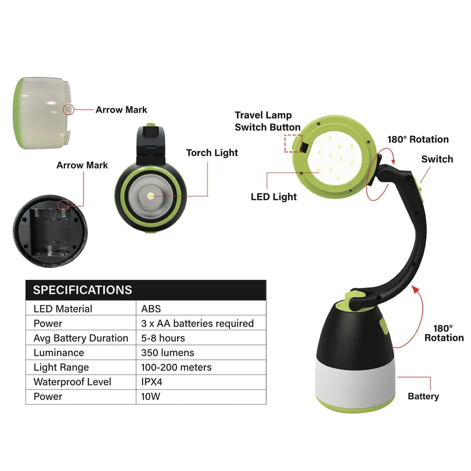 The ultra-bright torch light can be used indoor and outdoor, perfect for camping, emergencies and repairs.
